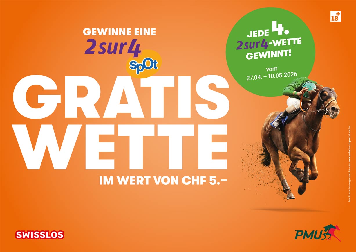 Gewinne eine 2 sur 4 Spot Wette im Wert von CHF 5.-