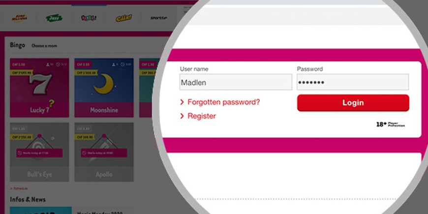 1. Log in or – if you don’t yet have a game account – register on www.swisslos.ch