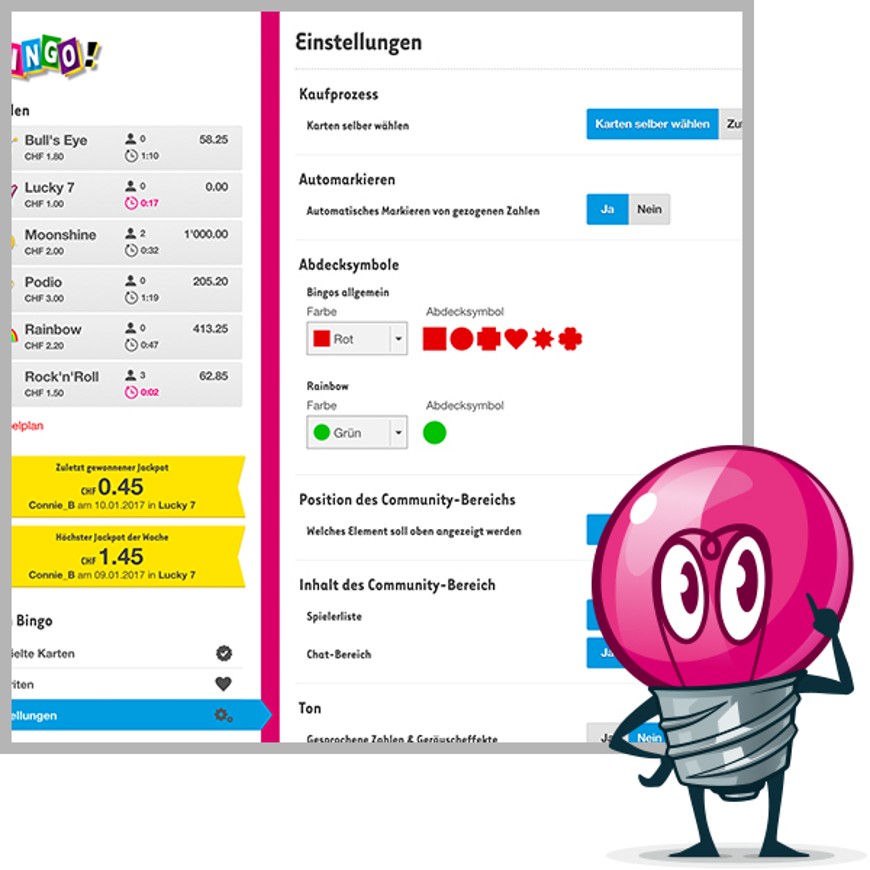 Swisslos Bingo products are available in multiplayer mode and always include a chat function. In an Internet context, the term chat means live online communication via text messages between at least two participants.