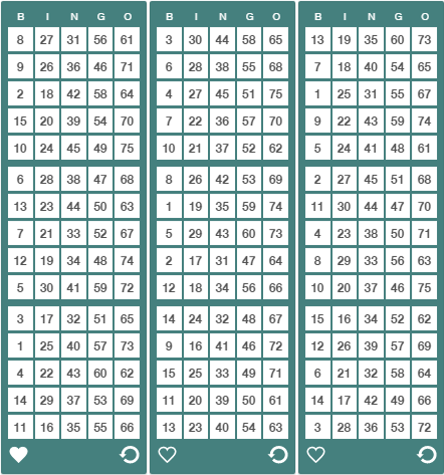 The selection and arrangement of the numbers within a column is random; however, the numbers are in ascending order, with the smallest at the top of the column and the largest at the bottom.