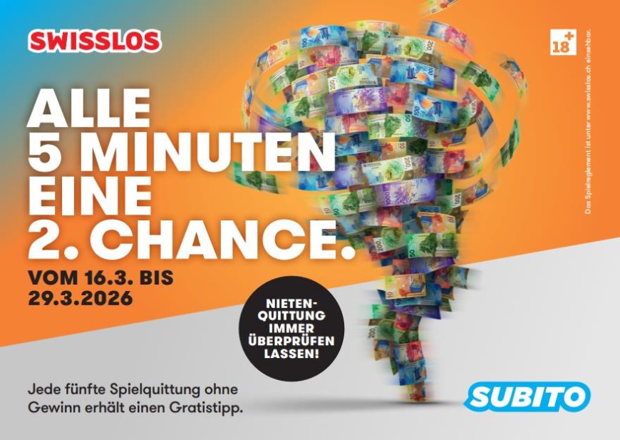 From 16 to 29 March 2026 at latest, every fifth redeemed rivet game receipt will immediately win a free tip worth 4 francs.