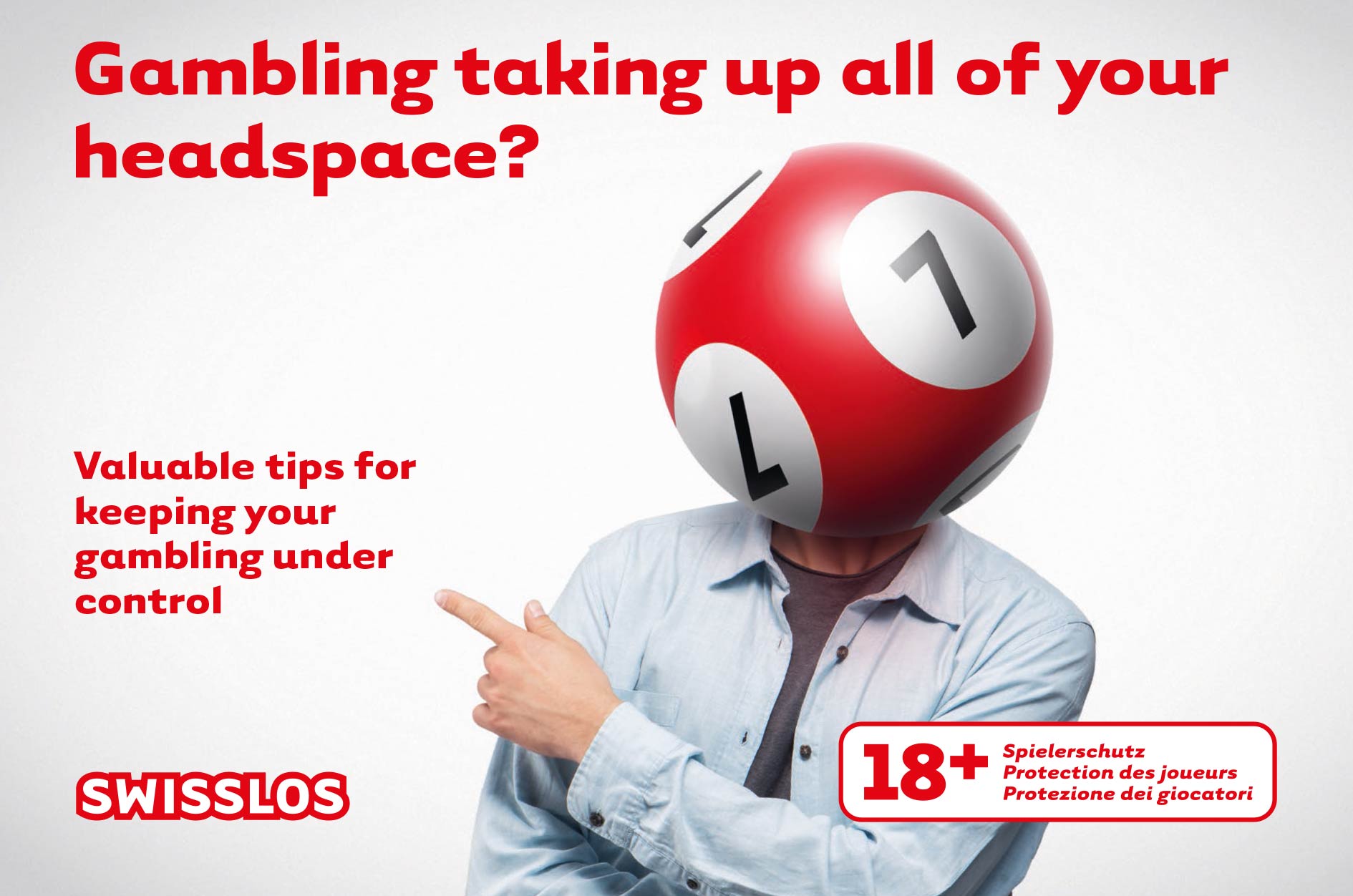 To ensure that the game remains a game, we offer you an opportunity on www.swisslos.ch to block yourself for one, several or all games. In addition, some games are subject to mandatory limits. Our brochure with an integrated diary can help you to keep your gaming behaviour in check.
