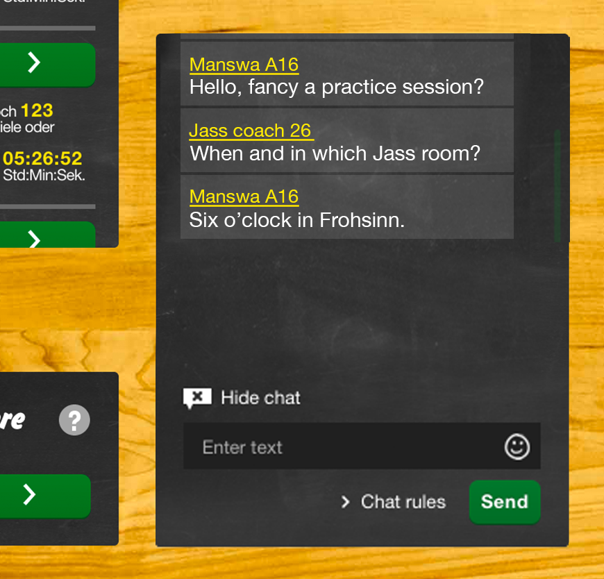 The Chat function is deactivated during a Jass round.