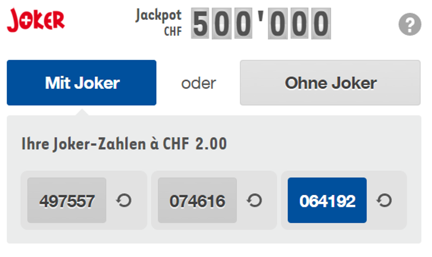 You can play up to 3 Joker numbers at one time. Every Joker number costs CHF 2.00.