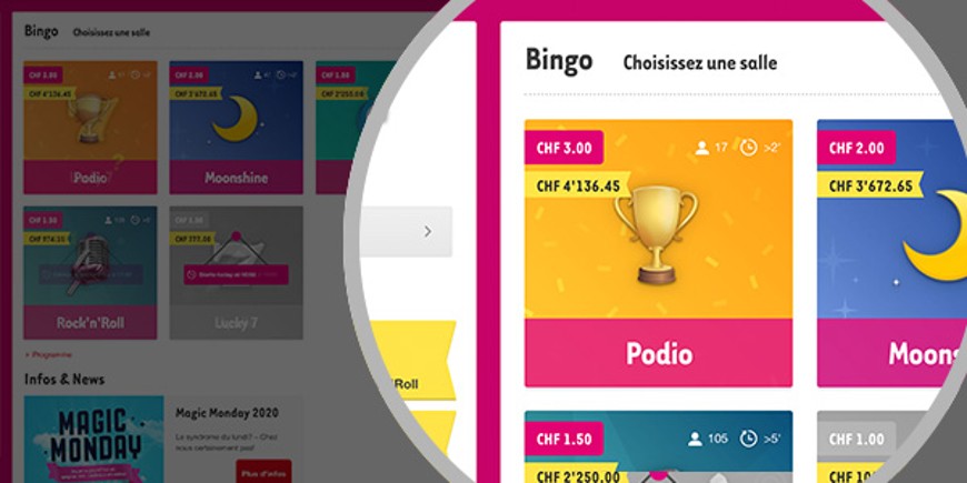 Les différents produits Bingo sont proposés dans des salles. Ces salles sont le lieu de participation au Bingo mais aussi de chat avec les autres joueurs.