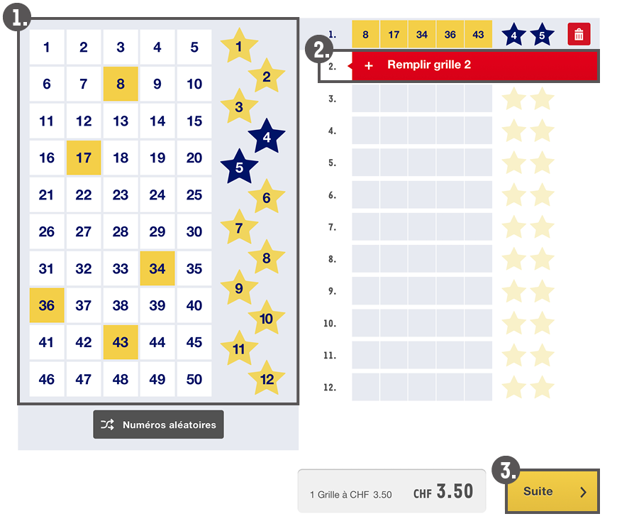 3. Cliquez sur „Suite“ dès que vous avez rempli le nombre de grilles que vous désirez jouer