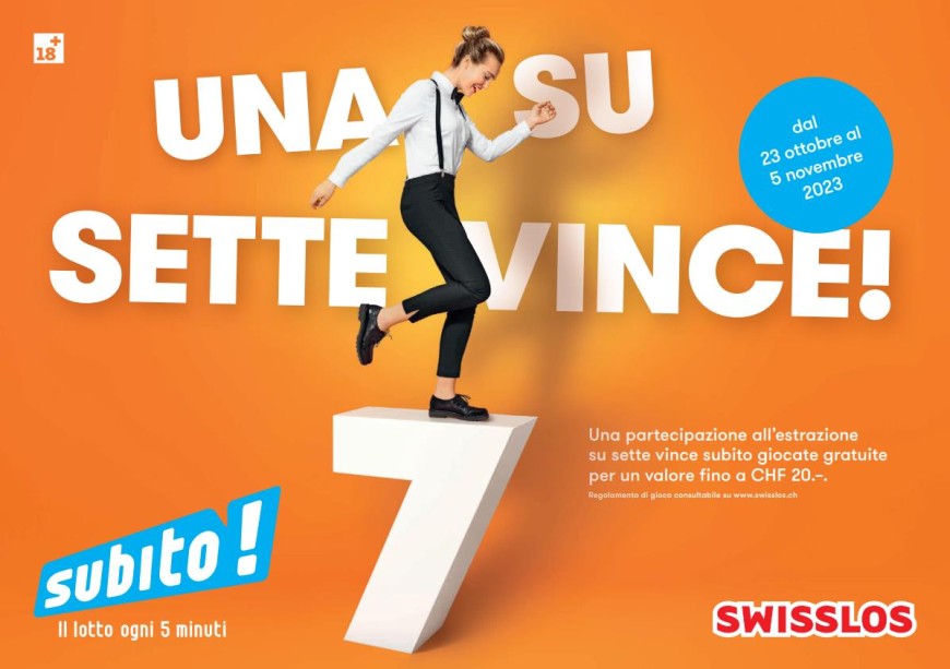 Dal 23.10. al 05.11.2023 al più tardi, una partecipazione all'estrazione su sette vince subito giocate gratuite per un valore fino a CHF 20.-.