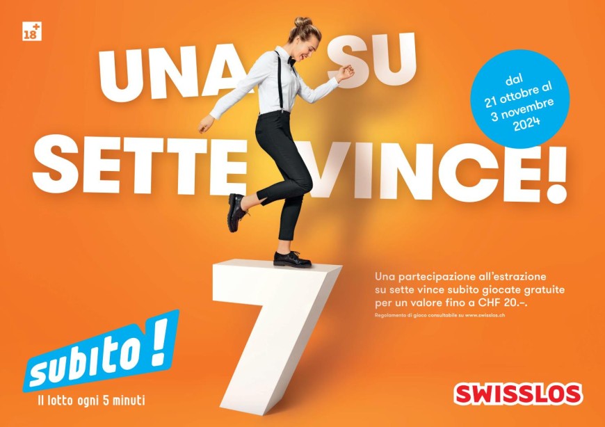 Dal 21.10. al 03.11.2024 al più tardi, una partecipazione all'estrazione su sette vince subito giocate gratuite per un valore fino a CHF 20.-.