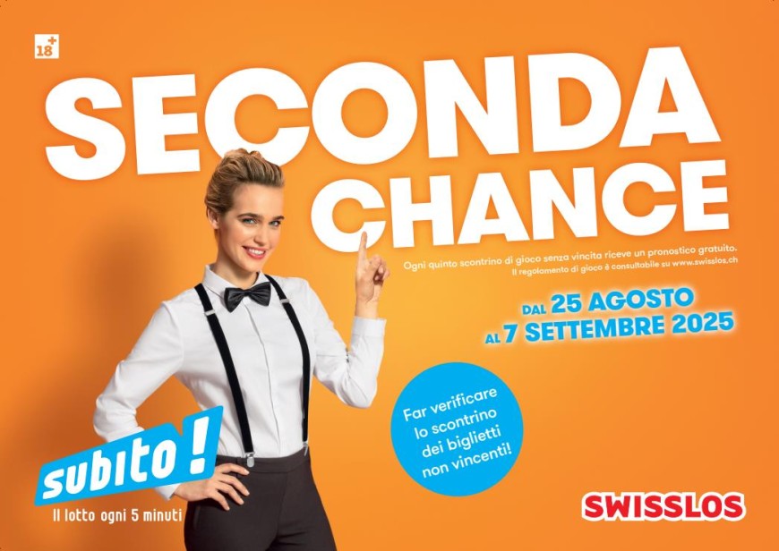 Dal 25.08. al 07.09.2025 al più tardi, uno scontrino di gioco non vincente su cinque realizzerà la vincita istantanea di unpronostico gratuito del valore di 4 franchi.